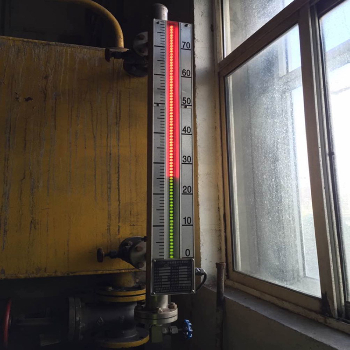 磁翻板浮子液位計當液位上升時,翻柱由白色轉(zhuǎn)為紅色,當液位下降時,翻柱由紅色轉(zhuǎn)為白色,指示器的紅、白界位處為容器內(nèi)介質(zhì)液位的實際高度。